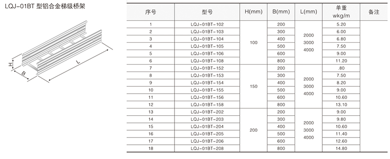鋁合金電纜橋架在某種結(jié)構(gòu)形式中無(wú)其它結(jié)構(gòu)形式中的某-種產(chǎn)品類別,選型可作代用表示。例如:在LQU-CC型槽式鋁合金電纜橋架結(jié)構(gòu)形式中,無(wú)鋁合金配線橋架中的LPC-03D, 即表示為LFC-CC-03D。